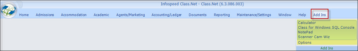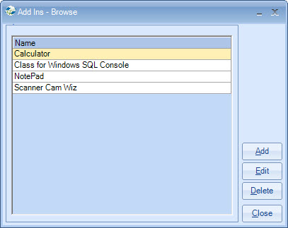 'Add Ins' browse screen.