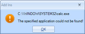 following error message will be shown when the OK button is clicked, indicating that the
