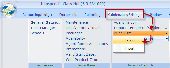 Price List - Export