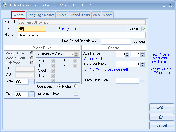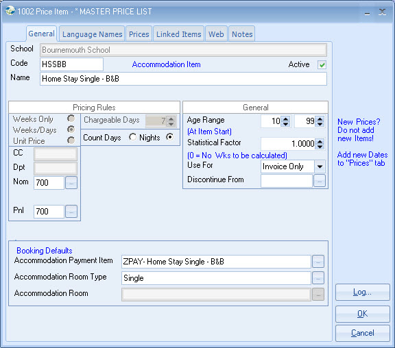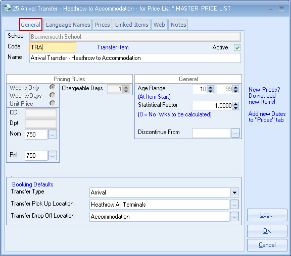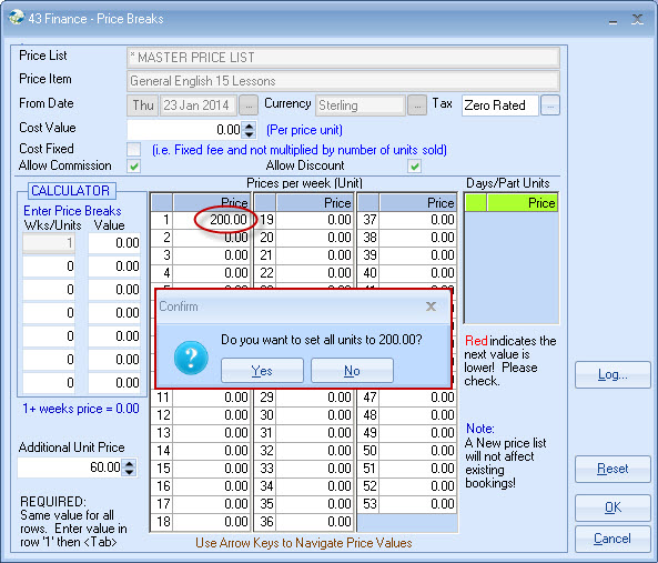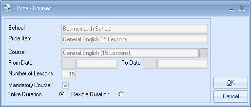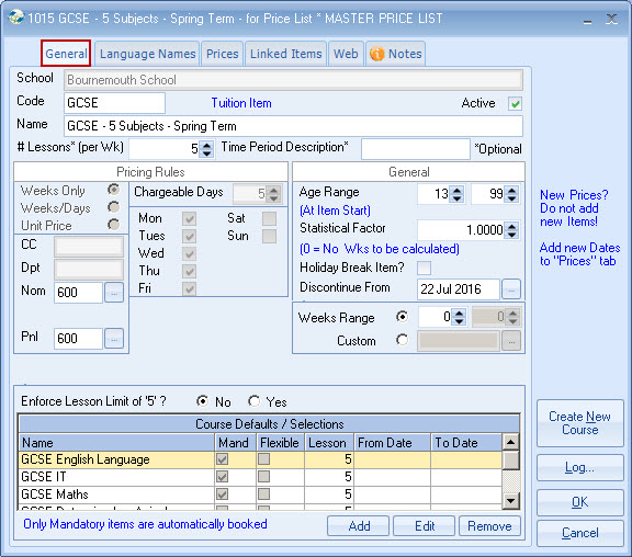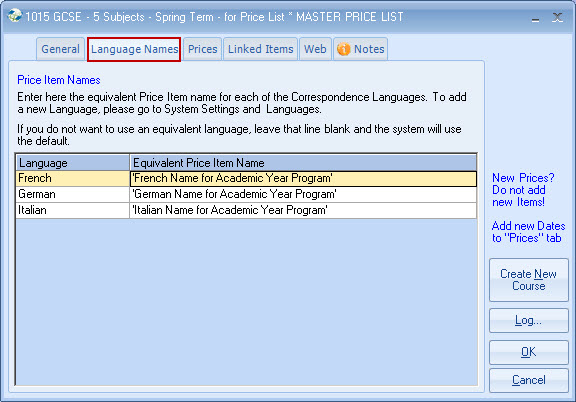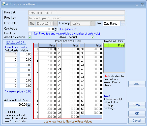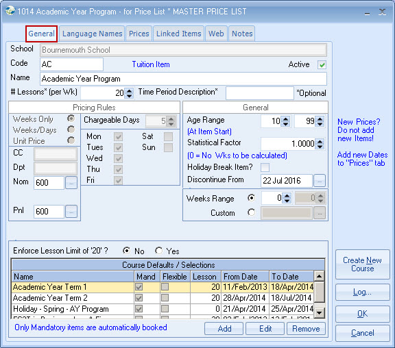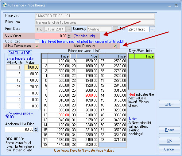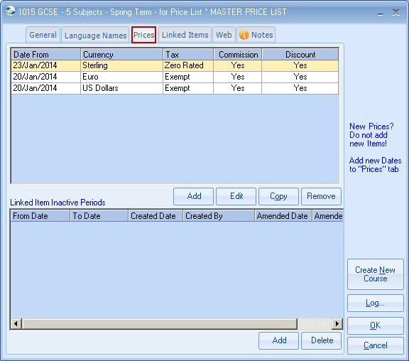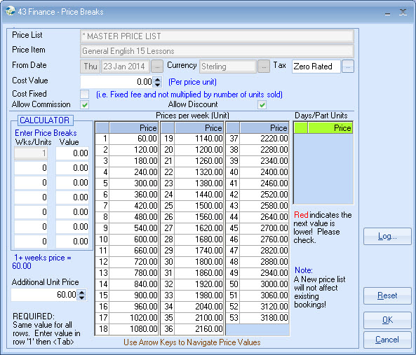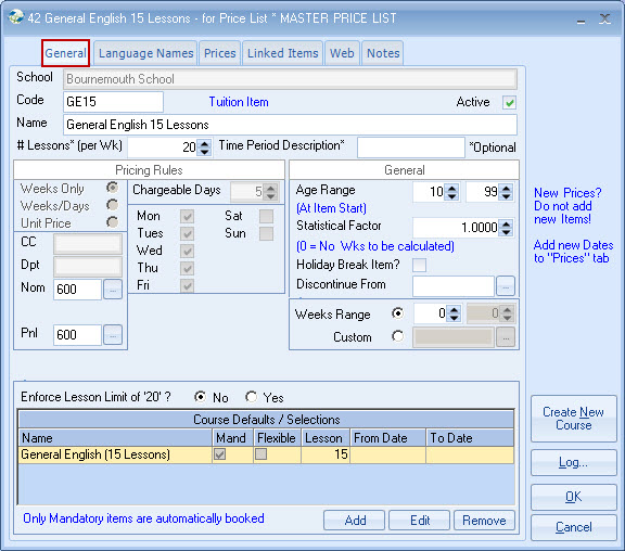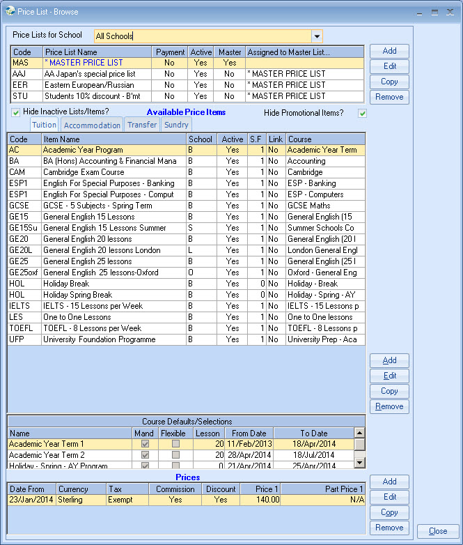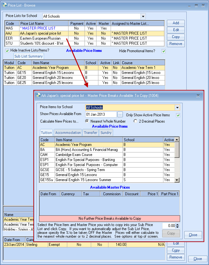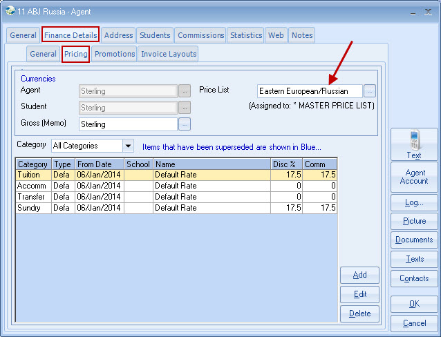 list. Example - General English 20 lessons MASTER PRICE = ?250 per week. Each Agent is attached to a Price list,