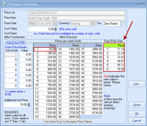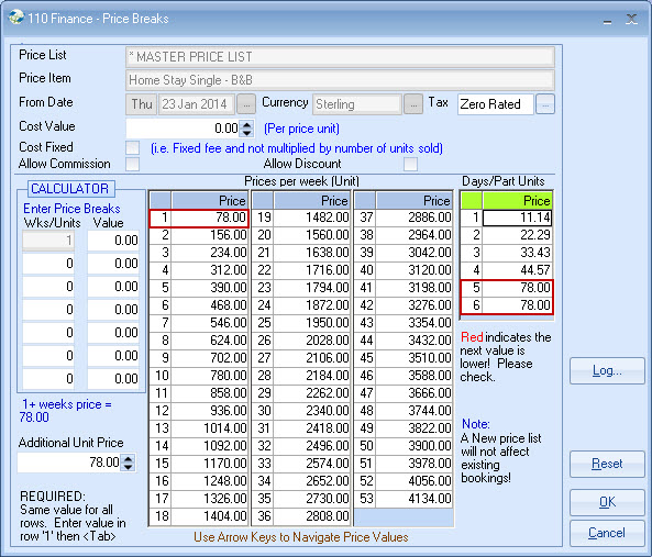 If some hosts are paid a different rate for the same category, then a new Master Price List is required for each set of exceptions, eg. Mrs A's rates.