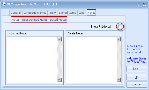 Price List The new Master Price list can now be used to