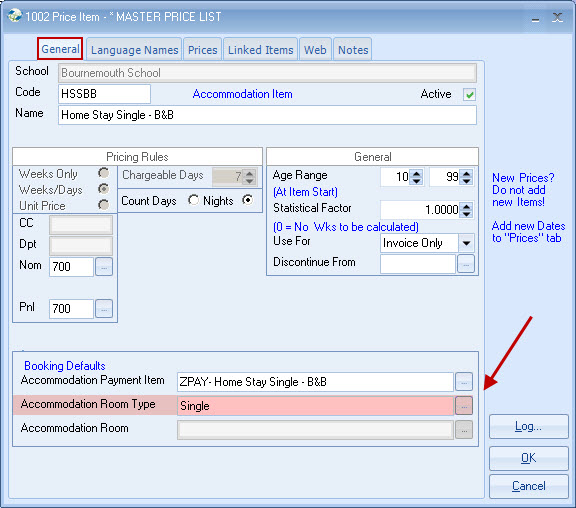 Price Items are required for "accommodation payment"