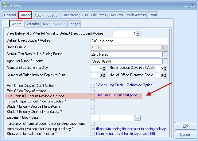 on a finance line, the system will use the sub price list if this represents a