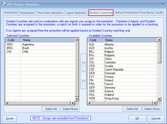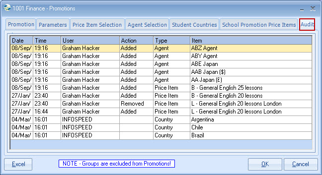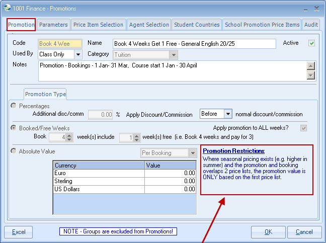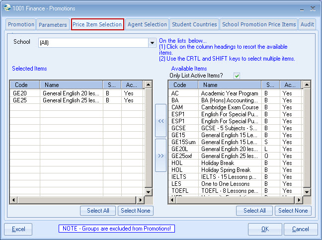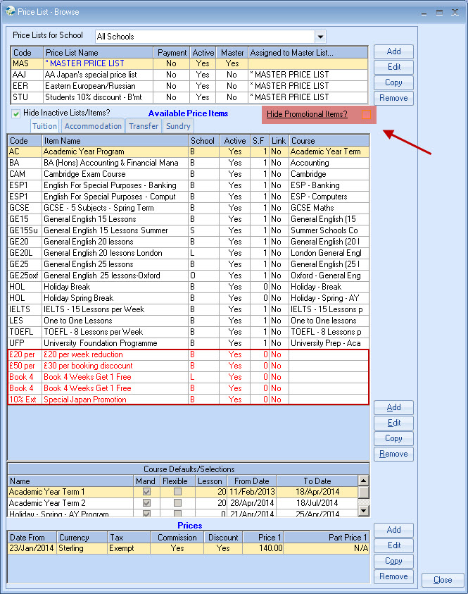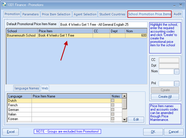 As each promotion has a unique Price Item for each school, statistics will clearly show the income effect against schools, agents, countries etc. Nominal codes also provide the facility to charge each promotion to different areas of the business, if required.