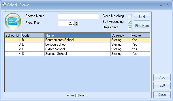 Editing existing school details