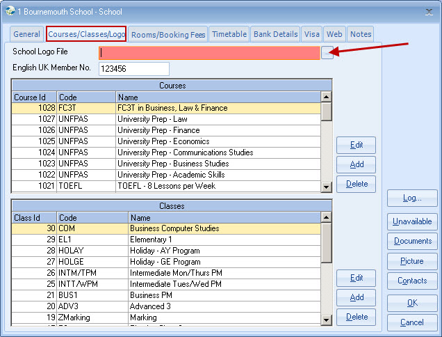 File location of the school logo file (use browse button to