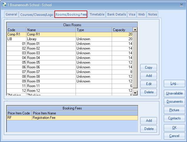 Mainly for reference. Class Rooms may be added/edited