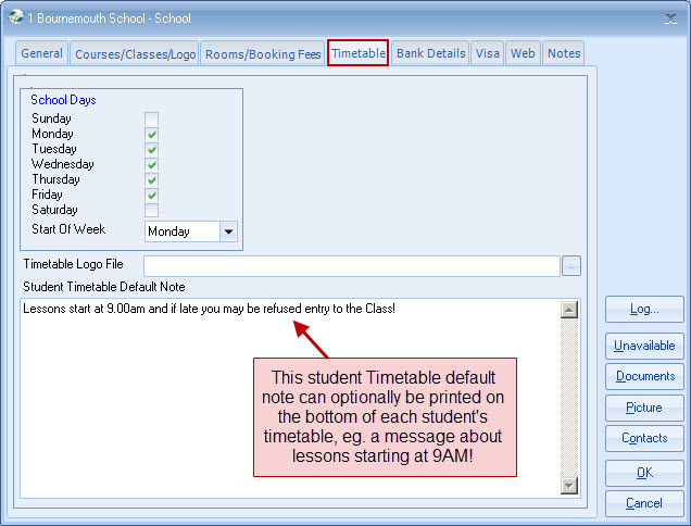 Set school days and normal start day.