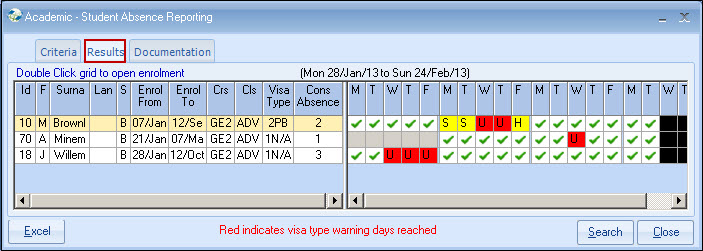 absence. Black - Days beyond the dates selected Documentation It is anticipated