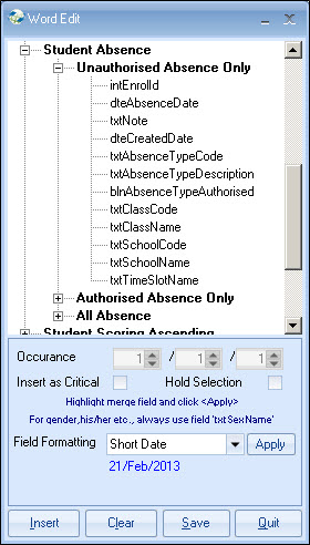 (unauthorised or both), covering a number of days: Note on Merge Fields