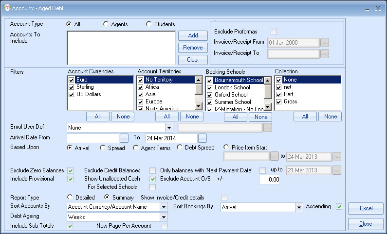 reports, eg. Ledger Balances/Reconciliation, and Control Balances.