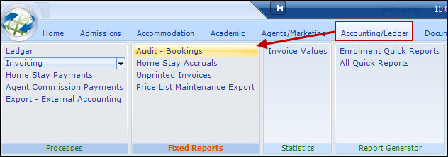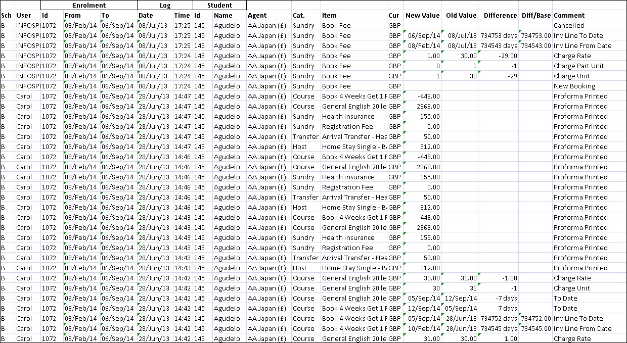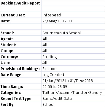 Audit - Bookings The Booking Audit Report is highly selective and can be used to monitor activity by a wide range of criteria: This can then be output to Excel: