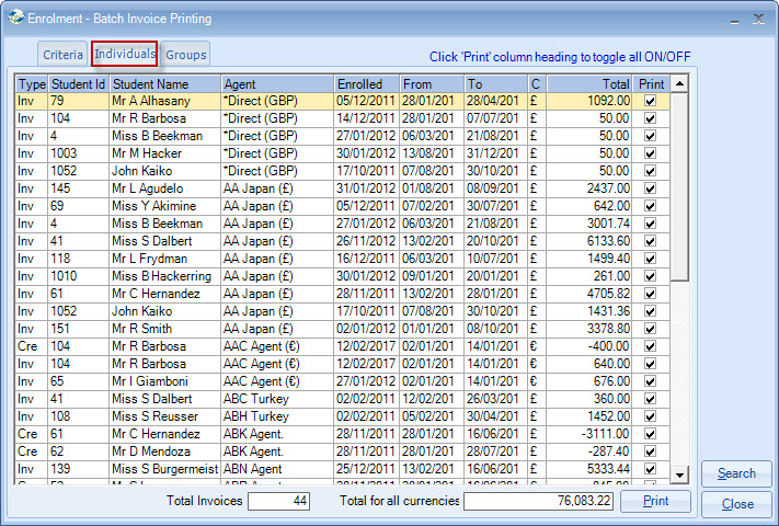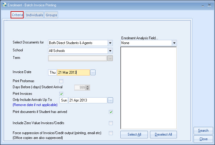 proformas on a "one by one" basis (as enrolments are created/amended) should run