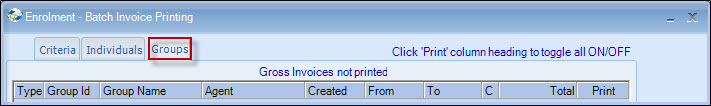 selected automatically to print, and Group Gross (Memo) invoices are