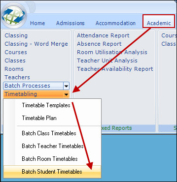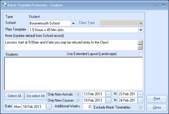 timetables can also be produced via the individual Class record.
