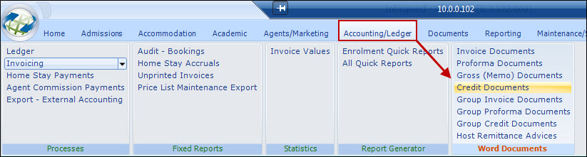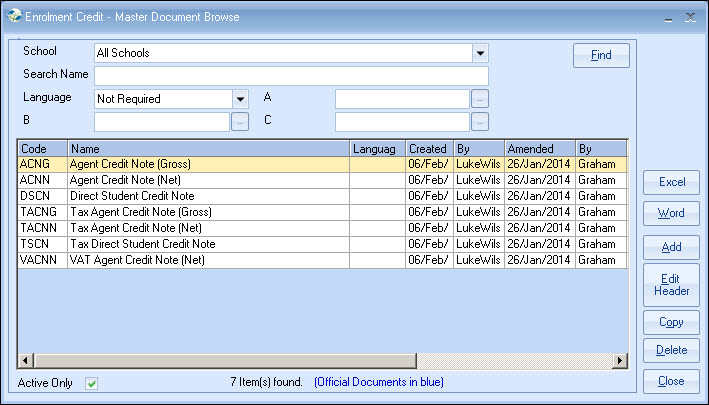 Credit Documents All "Documents" work in the same way, so please refer to Enrolments