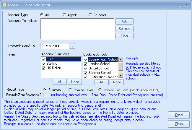 up to a specific date (typically an accounting period end). Against the "Dated Debt" receipts (up