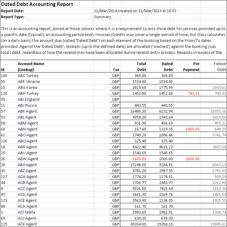 Dated Debt This is an accounting report aimed at