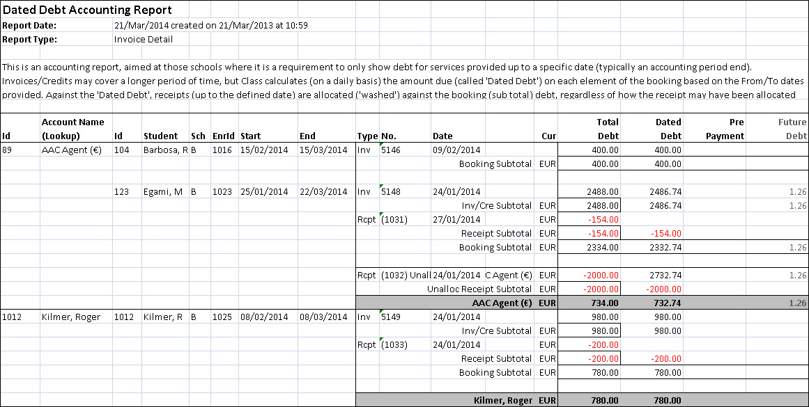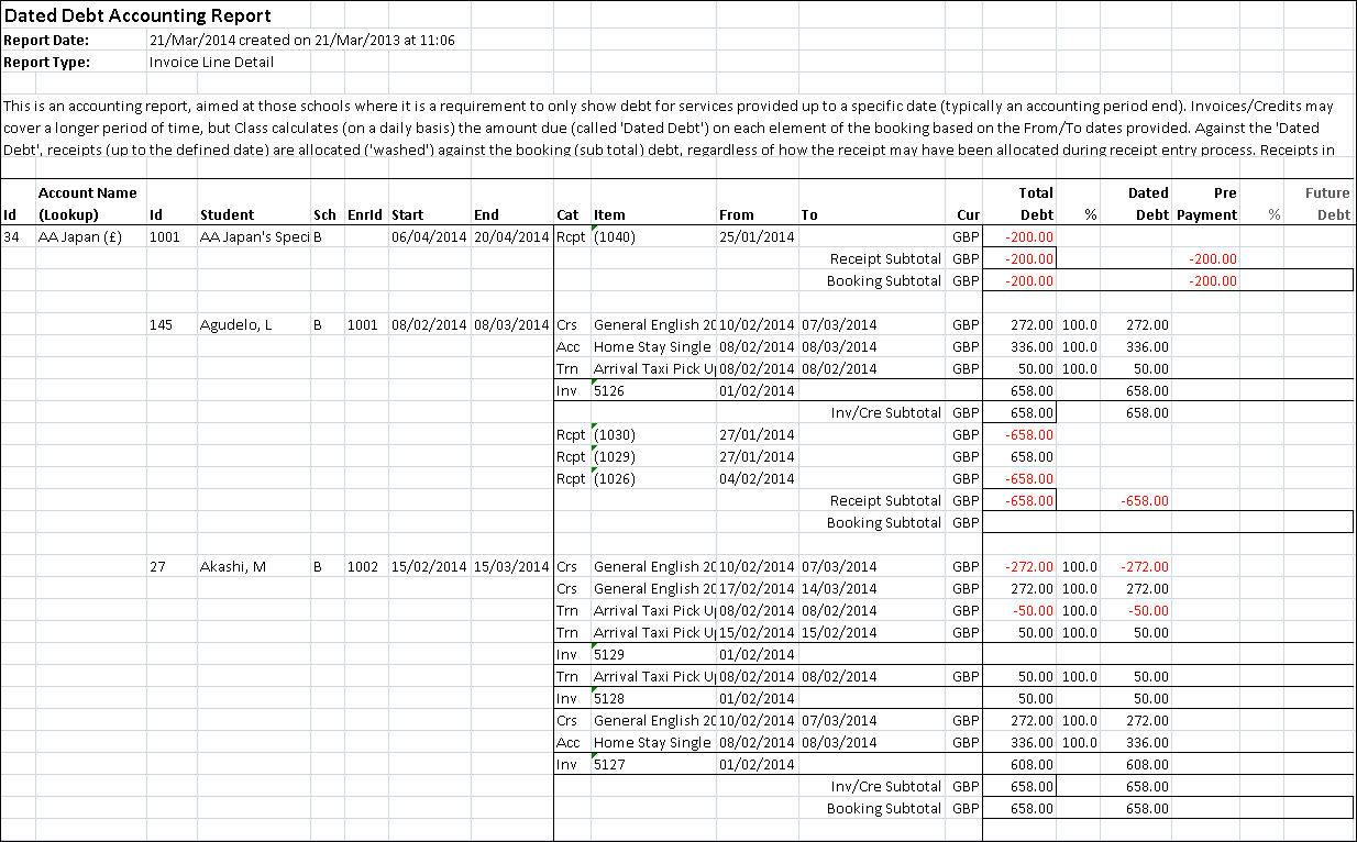 and the future debt in relation to the "Invoice/Receipt To" date.