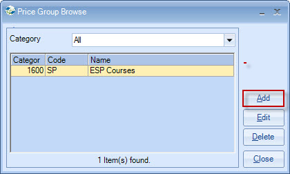 collecting price items together for discounting/commission purposes. Select "Add": Each price group needs to be