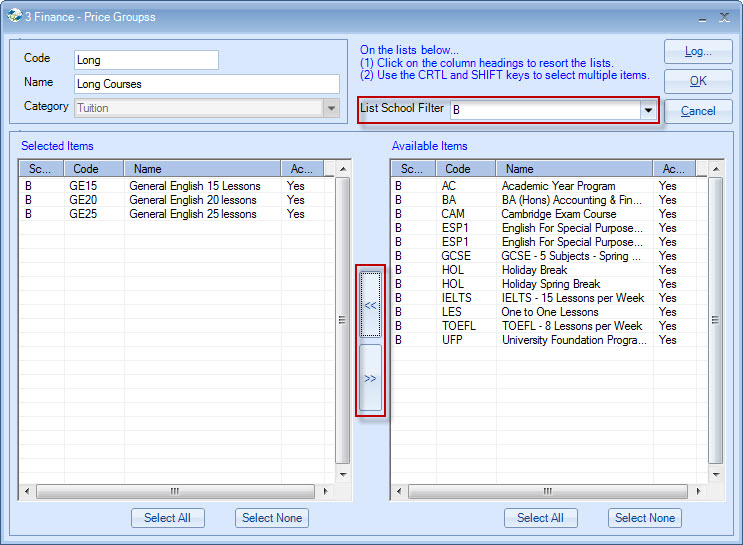 First select a school, & then select items to be used