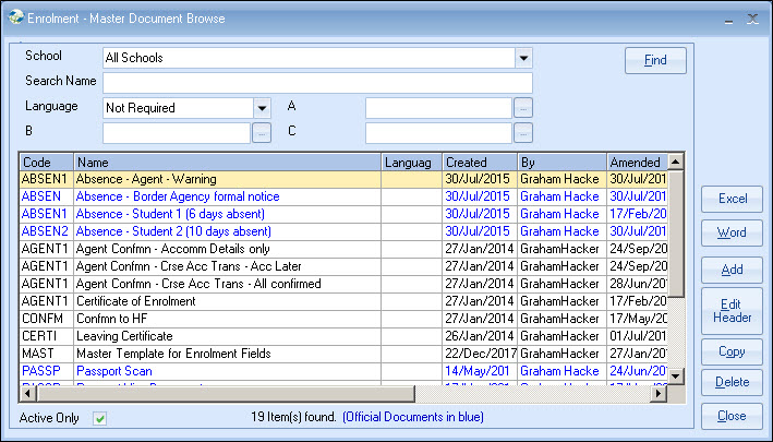 As "Enrolment Documents" are the most commonly used, these are