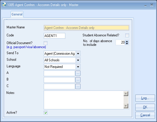 Document Send To School A, B, C Notes Template example (showing merge