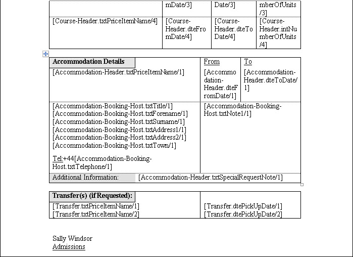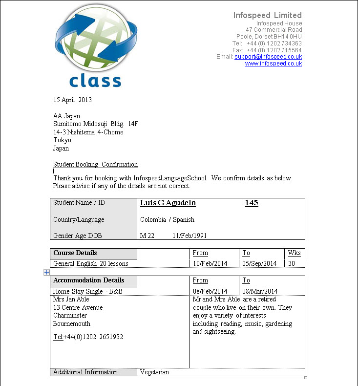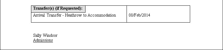 letter confirming accommodation booking.