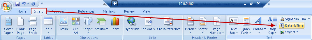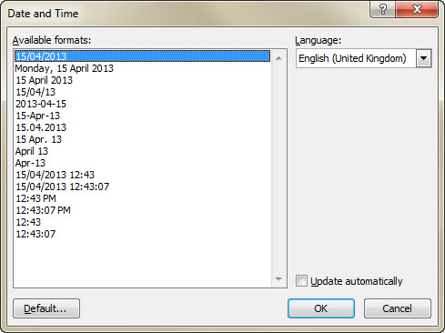 the use of the "Insert - Date and Time" function within Word, eg.