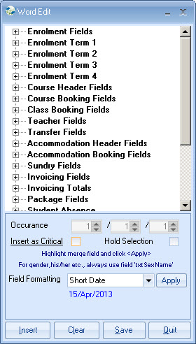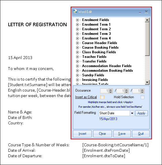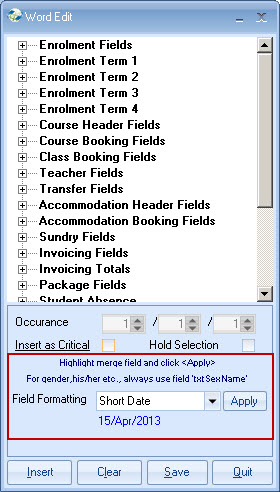 the merge field in the document (see above), select the format required and