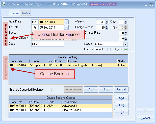 the course has been entered 4 times. The first entry line has all items