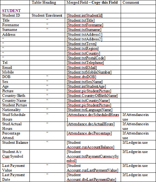 Merge Fields