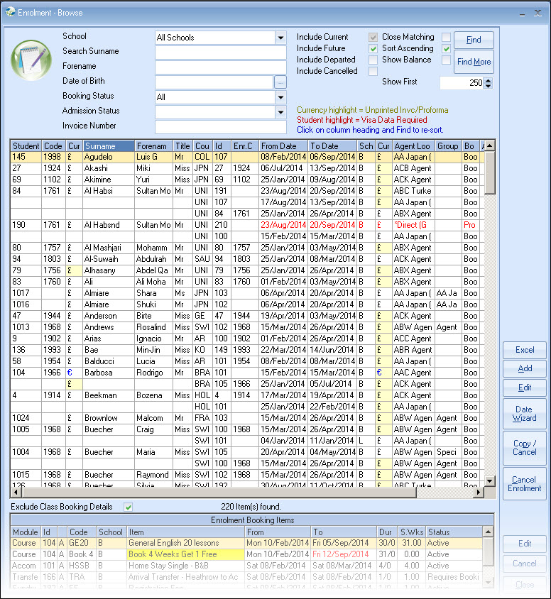 For UK schools the regulations state that only the first 12months values only are required however, Class will enter the full enrolment value, as schools rarely enter single enrolments for greater than 12 months. Where "packages" exist it is possible (depending on setup) that tuition and accommodation values may not be split!