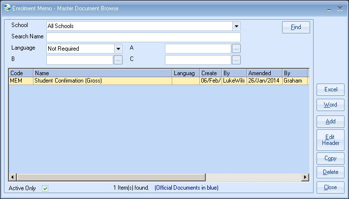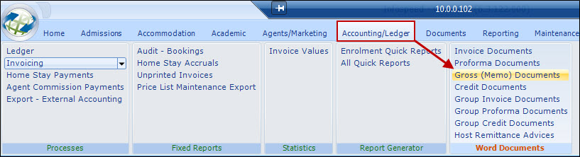 Gross (Memo) Documents All "Documents" work in the same way, so please refer to Enrolments