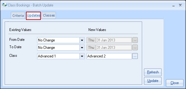 example above, the Class is being changed from Advanced 1 to Advanced