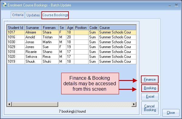 recalculated. An Excel Report is also available: Enrolment Coursing BOOKING Batch
