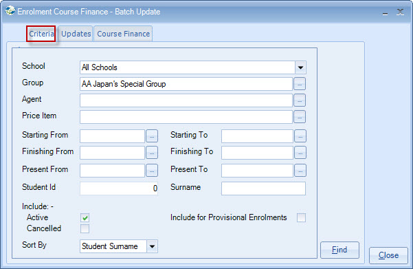 Enrolment Coursing FINANCE Batch