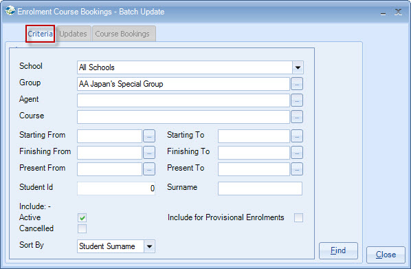Updates Booking Batch Updates (bottom part of the Enrolment