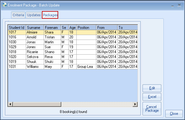 edited, by double clicking the listed results. Use the "Find" button to display matching
