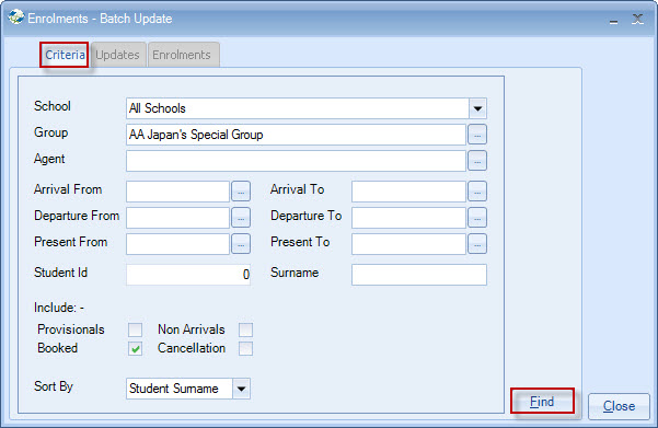 values may be selected & batch updated to a new value. In the example above the Arrival date is being