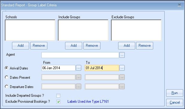 student name, group dates, group name and the accommodation