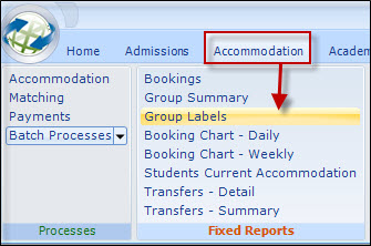 information includes student name, group dates, group name and the accommodation