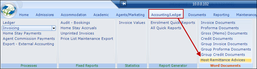 Host Remittance Advices All "Documents" work in the same way, so please refer to Enrolments