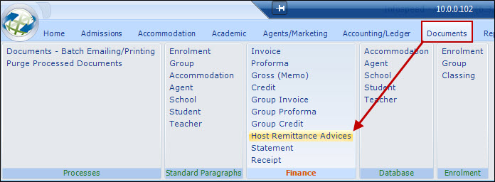 Host Remittance Advices All "Documents" work in the same way, so please refer to Enrolments