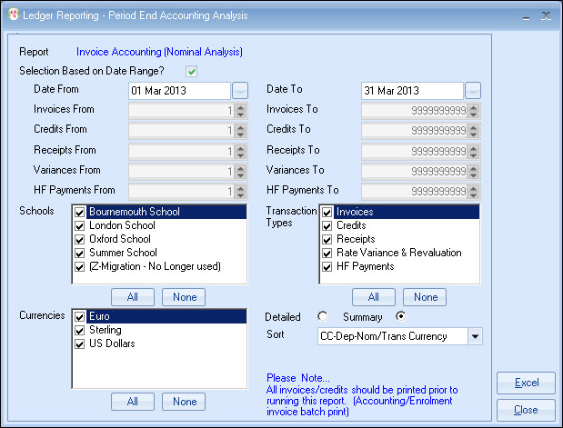 A summary report provides totals for posting to a Nominal