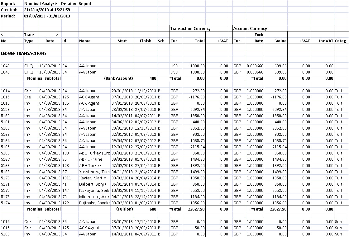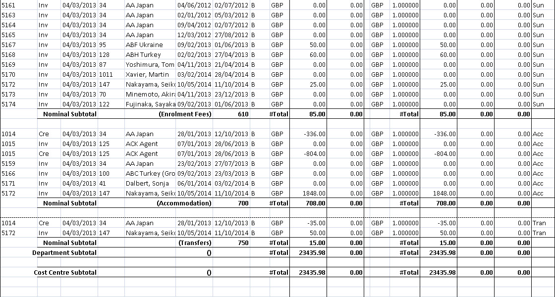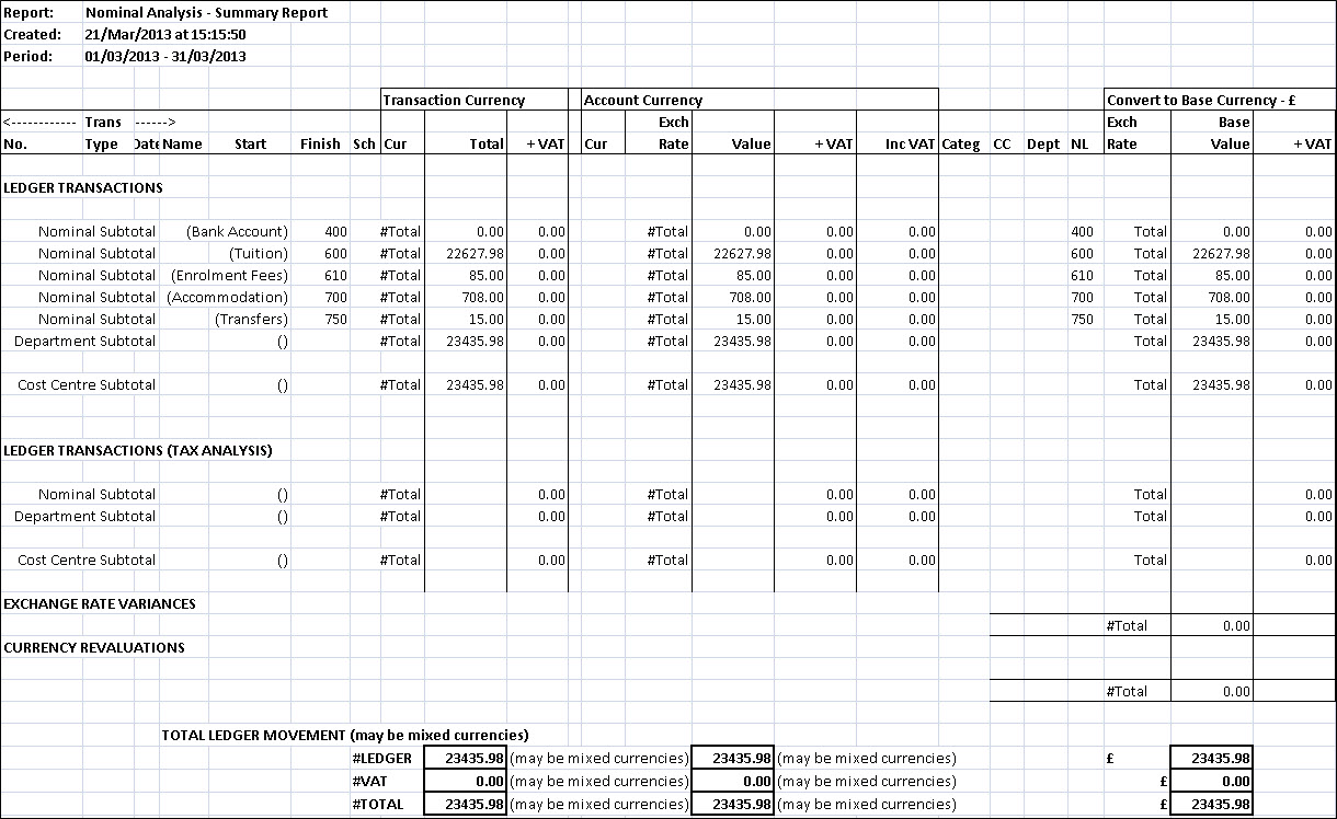 (totals per CC/Dept/Nominal)