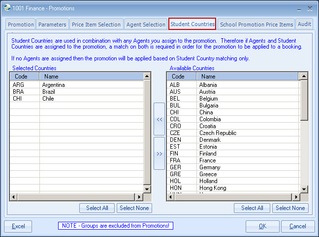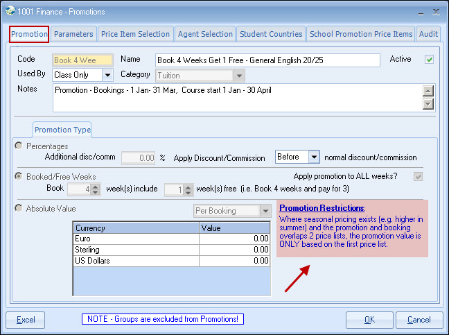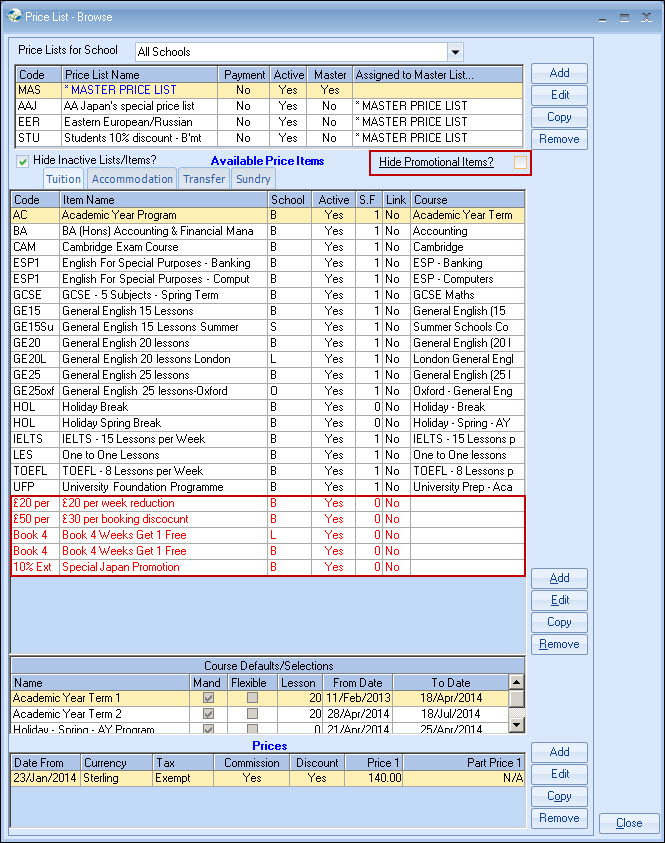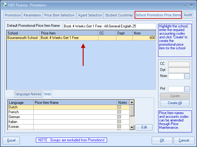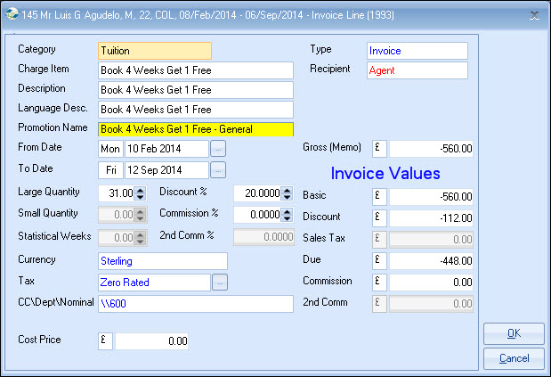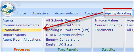 As each promotion has a unique Price Item for each school, statistics will clearly show the income effect against schools, agents, countries etc. Nominal codes also provide the facility to charge each promotion to different areas of the business, if required.