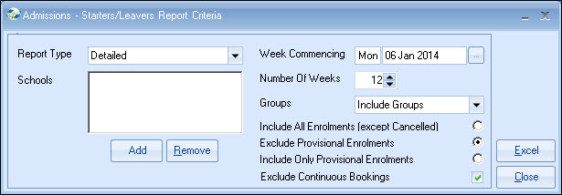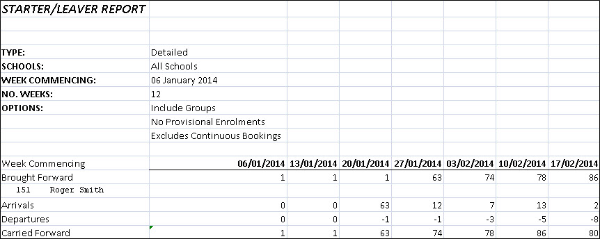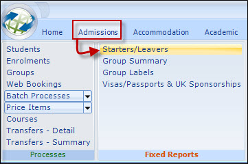 Fixed Reports - Starters / Leavers This is a report of the number of students (head count).Enter your selection criteria: Results sent to Excel: