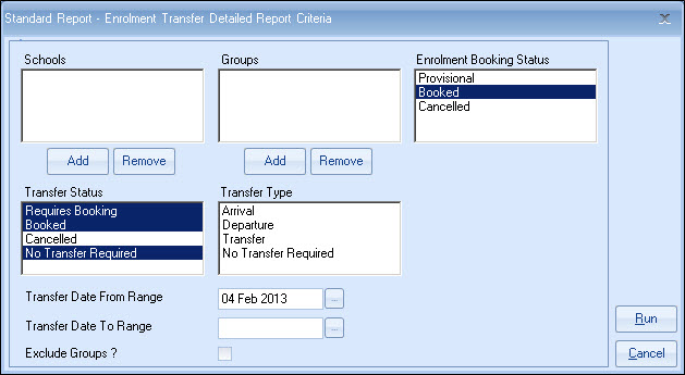 This allows you to generate a detailed transfer report tailored to your specifications.